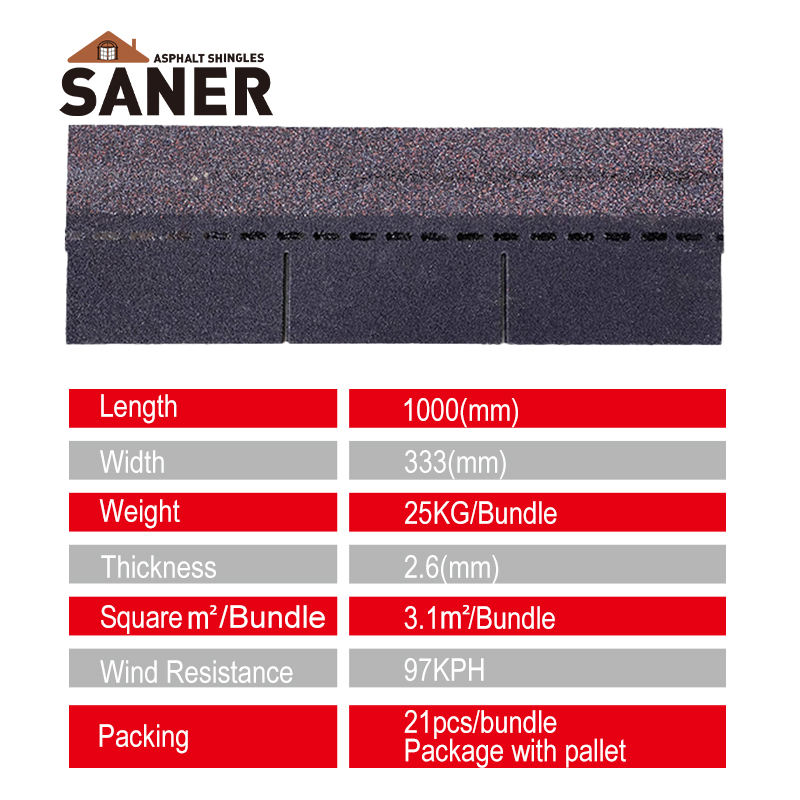 2.6mm 3-Tab Bardeaux Coupe-Vent Tuiles Asphalte Architectural Tejas Asfalticas Pour village Hôtel Teja Asfaltica Atap Bitume