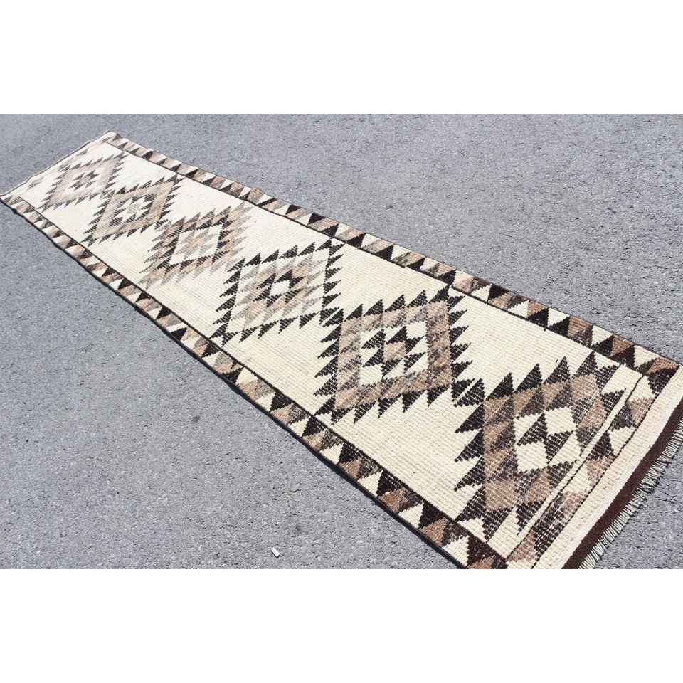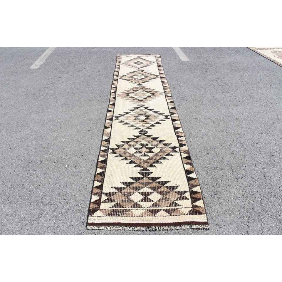 Tapis turc 2,6 x 12 pieds, tapis de couloir vintage, tapis marron à motifs floraux