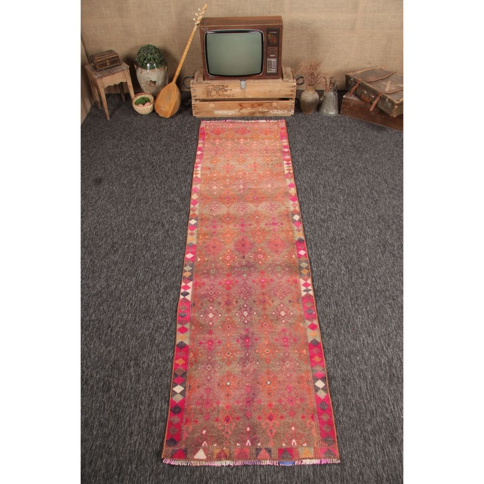 Tapis de 2,6 x 9,5 pieds, tapis turc vintage, tapis géométrique rose Herki