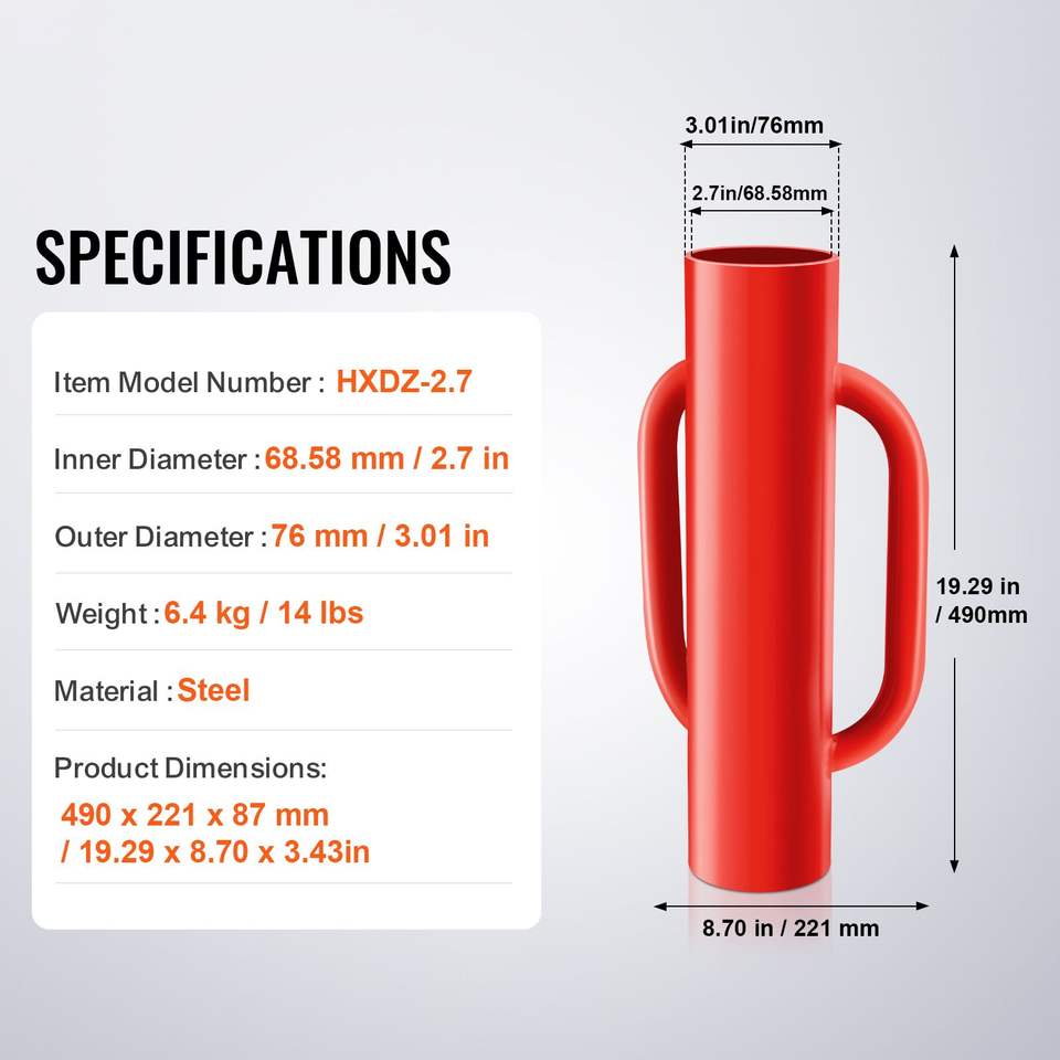 Pilonneuse manuelle robuste en acier au carbone pour poteaux de clôture, diamètre intérieur 2,7 pouces, 14 lb, pour usage agricole