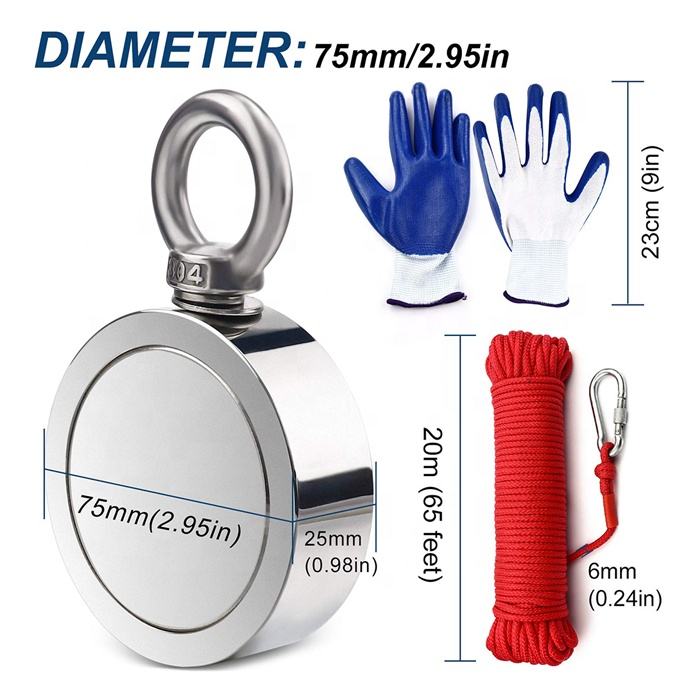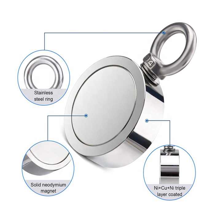 Nom du produit:Aimant double face de pêche en néodyme avec une force combinée de 1 000 lb