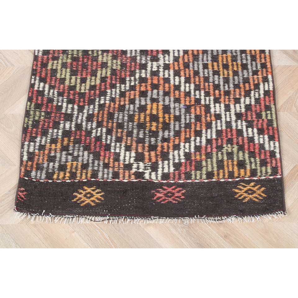 Tapis vintage 2,7 x 8,9 pieds, tapis Kilim, tapis persan brun en laine