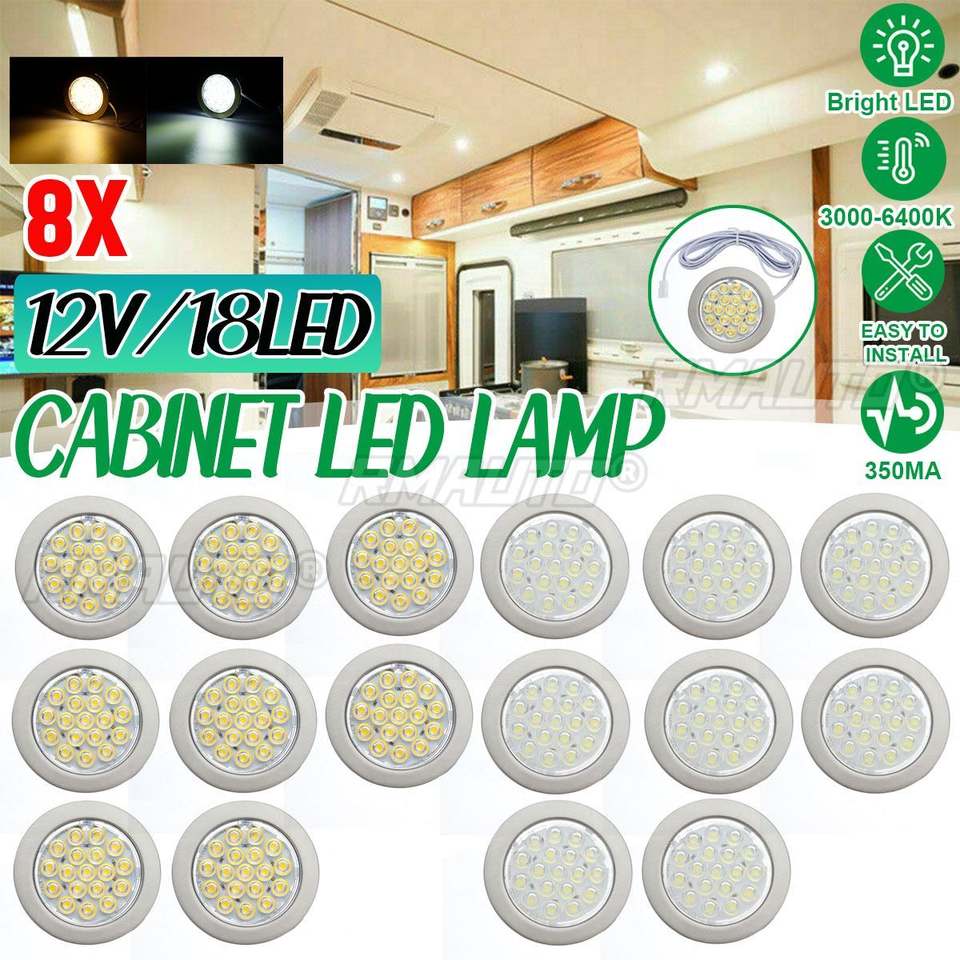 2-8PCS 12V LED Plafonnier Encastré pour Éclairage Intérieur de Voiture, Plafonnier de Toit, Lampe de Placard pour Camping-car, Remorque, Bateau