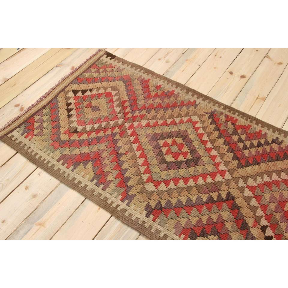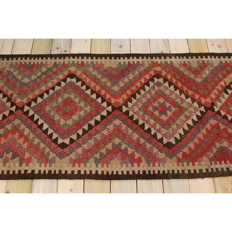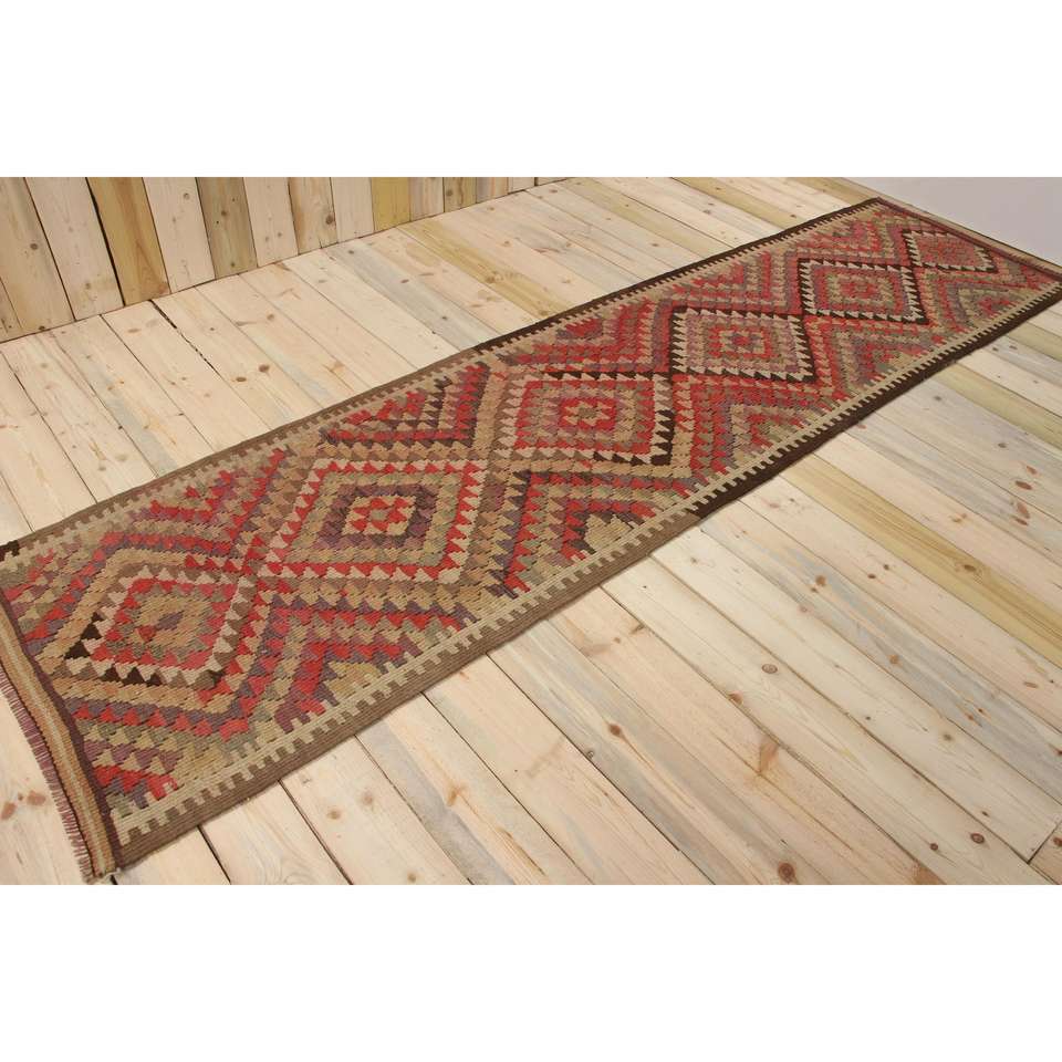 Tapis vintage 2,8 x 10,8 pieds, tapis turc en laine à imprimé animal rouge