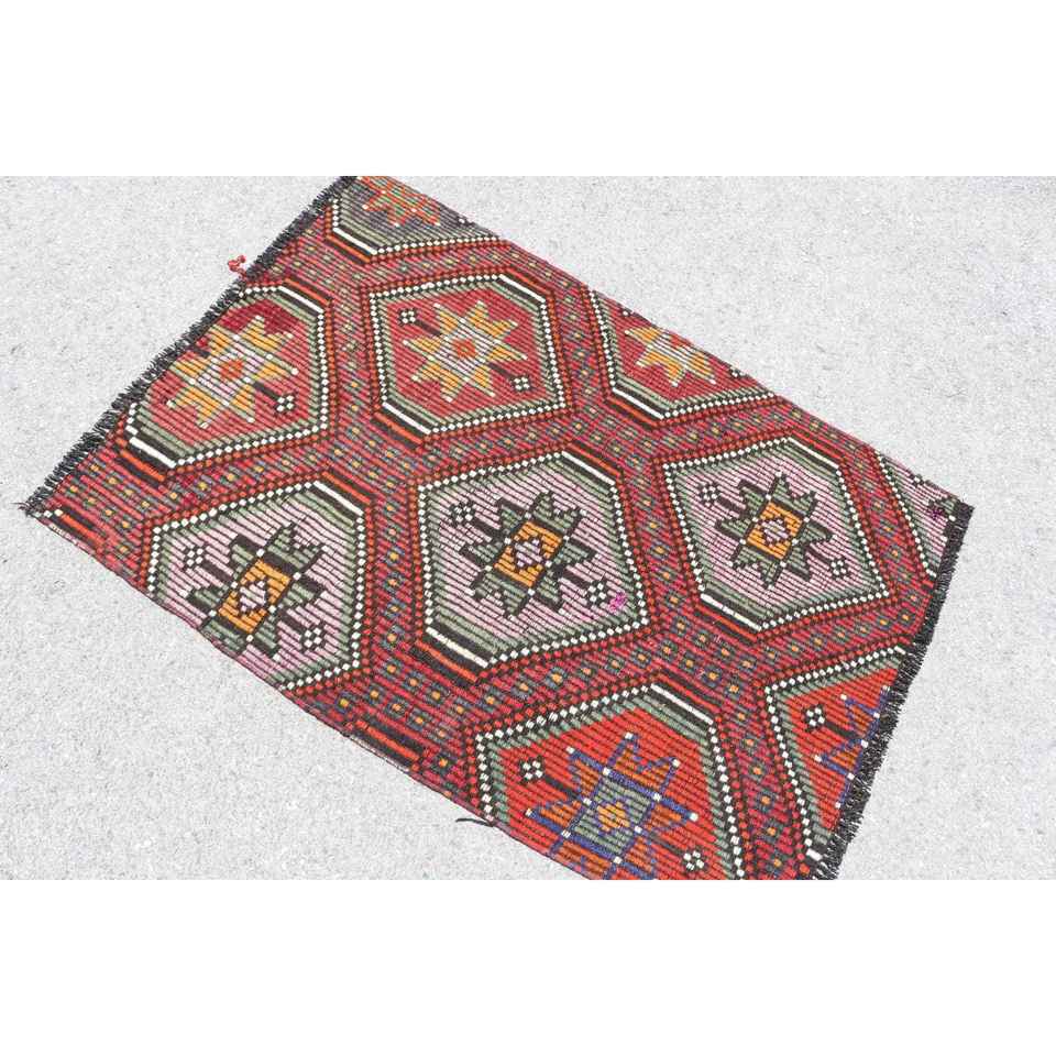 Tapis de 2,8 x 4 pieds, petit tapis turc, tapis abstrait rouge Kilim
