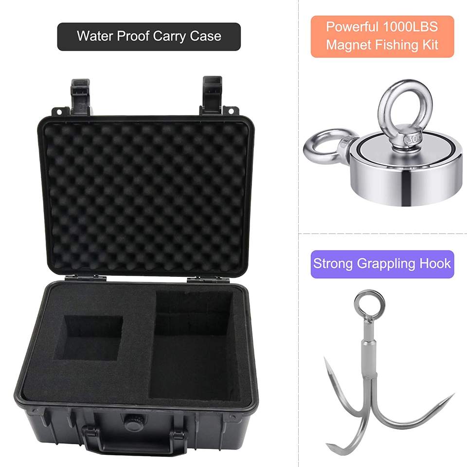 Kit d'aimant de pêche de 2.95 pouces avec corde 700 LBS tirant grappin robuste 65FT gants de corde mousqueton de verrouillage étui de transport