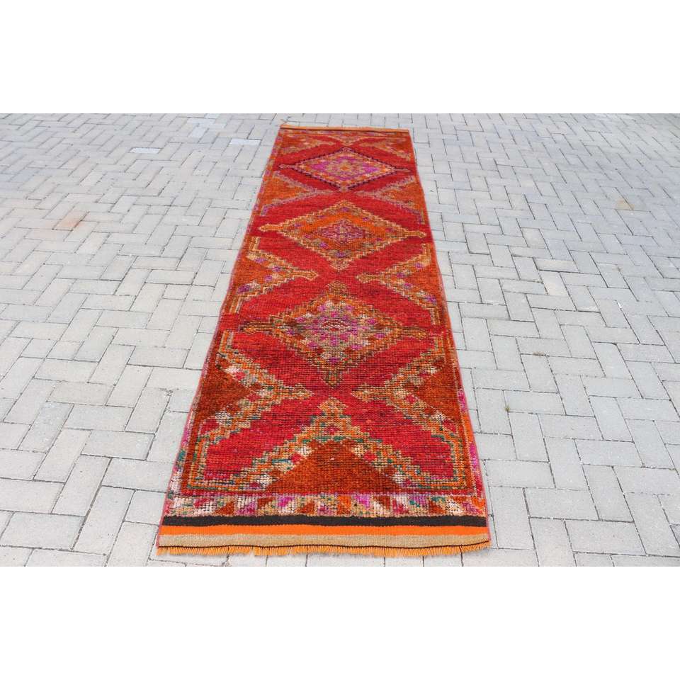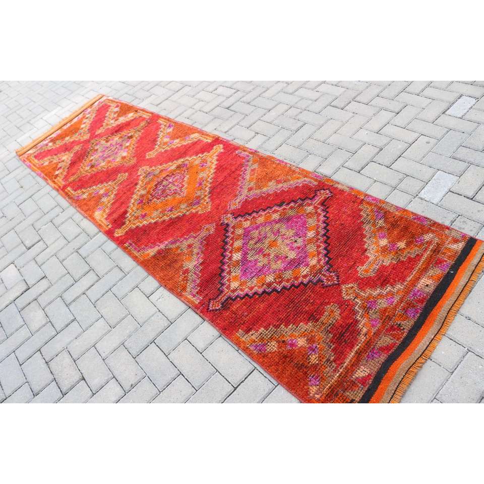 Tapis de 2,9 x 10,3 pieds, tapis turc vintage, tapis en laine Herki rouge