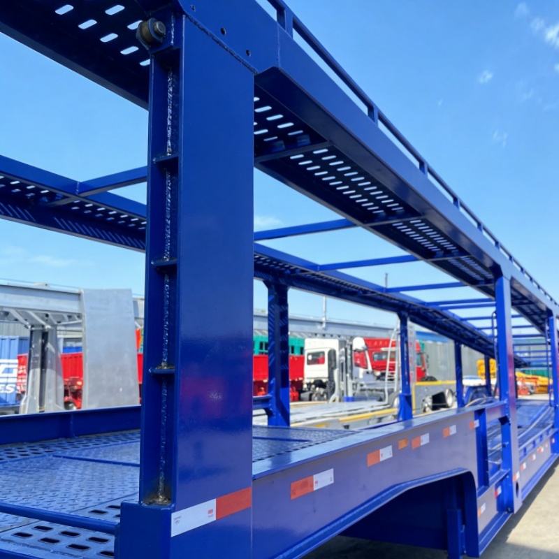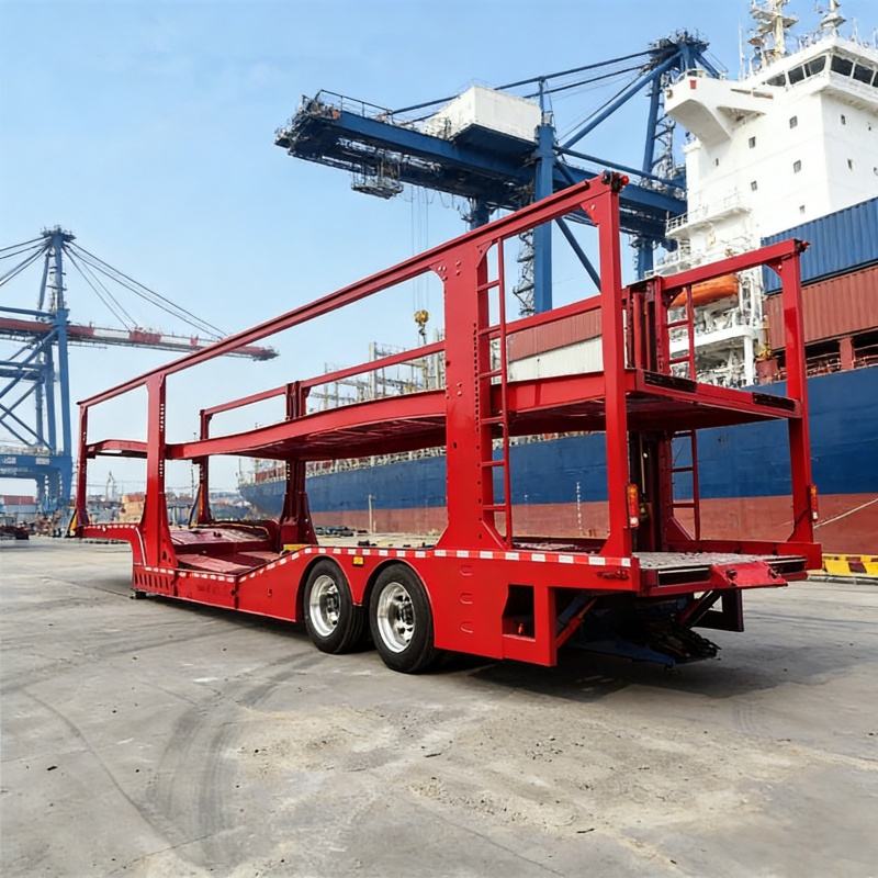 Semi-remorque porte-voitures à double étage à col de cygne, 2 essieux, 7 voitures