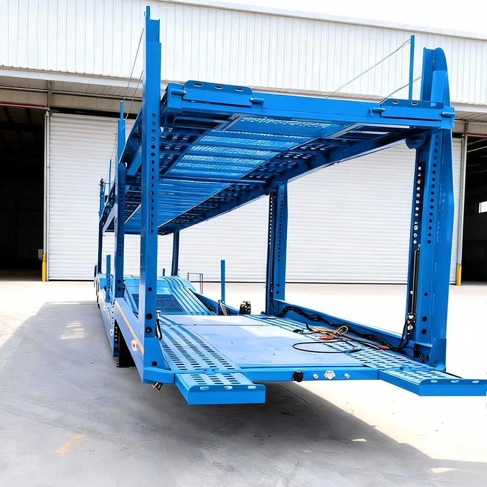Semi-remorque porte-voitures 2 essieux 17m de haute qualité avec élévateurs à vérins pour le transport de 8 voitures et SUV