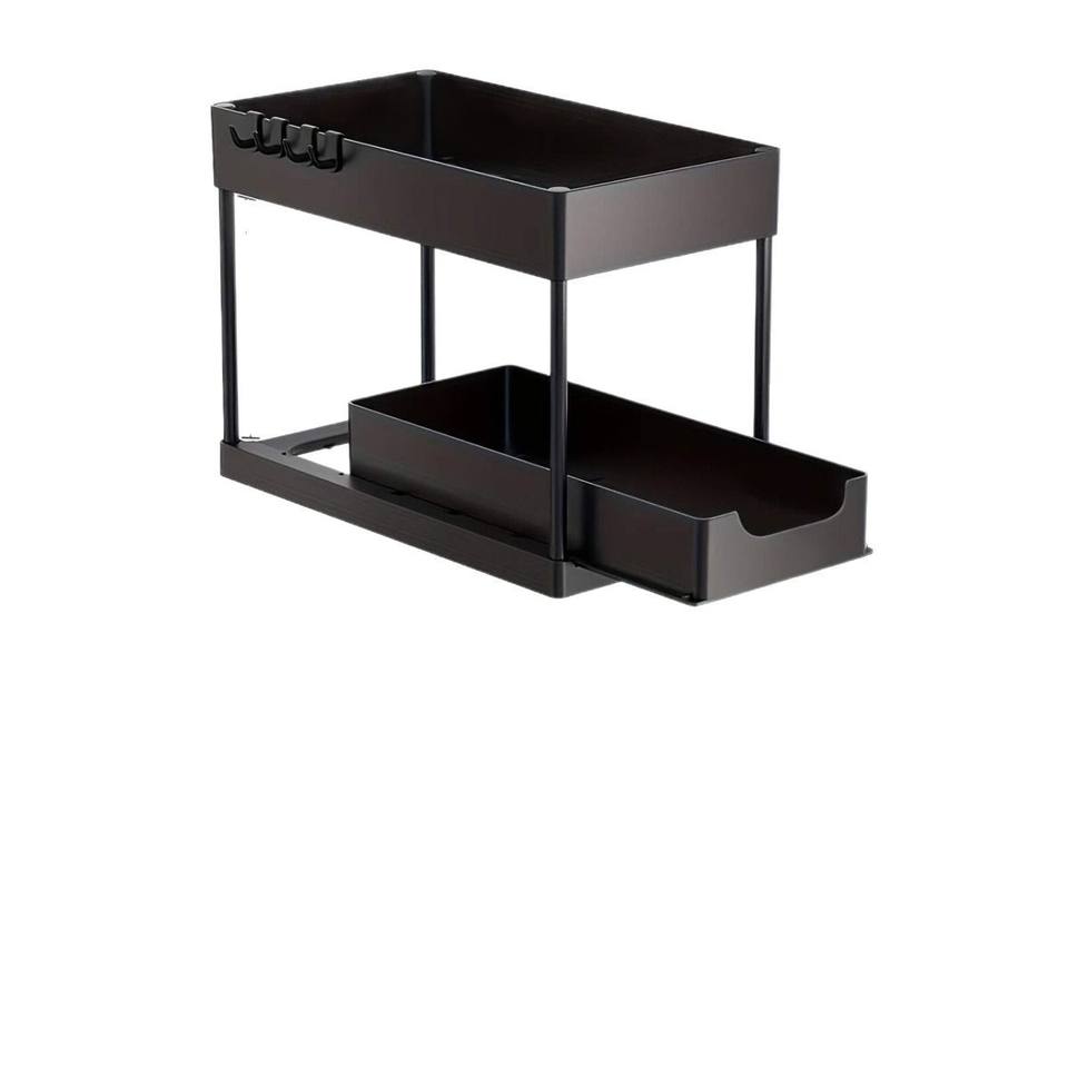 2 paniers avec 4 crochets, organisateur sous l'évier à 2 niveaux, panier coulissant pour armoire, étagère avec crochets, organisateur de rangement pour tasses suspendues