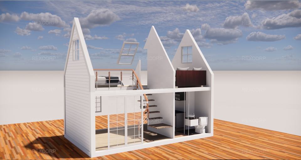 Maison conteneur 2 chambres avec grenier à pignon, design ferme, toit en pente, villa de montagne