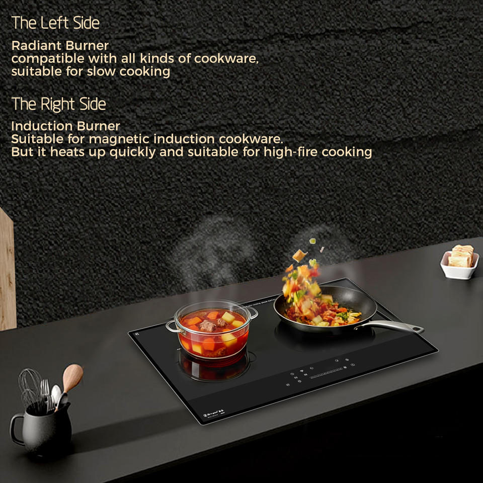 Table de cuisson à induction 2 feux, cuisinière intelligente double avec système de sécurité de verrouillage enfant