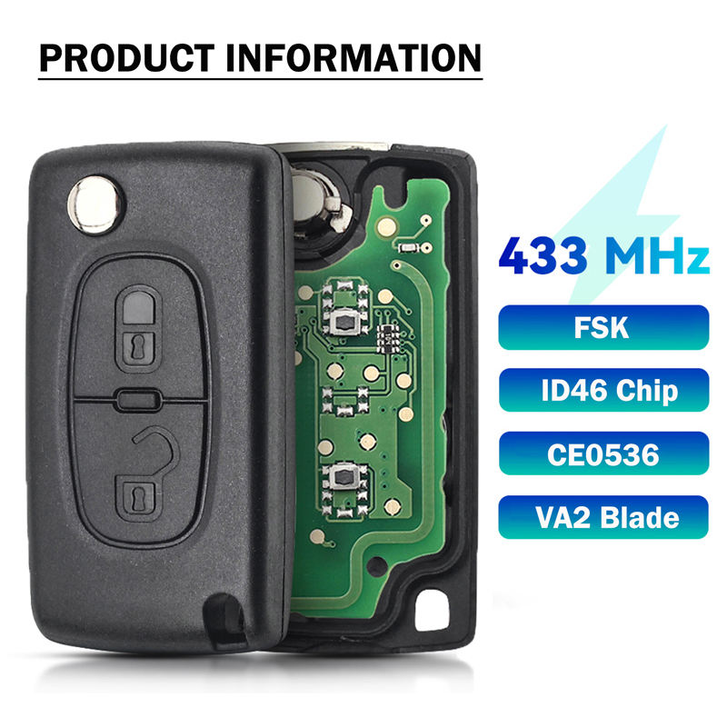 Clé de voiture à distance à 2 boutons 433 MHz avec puce électronique ID46 PCF7961 pour Peugeot 207 307 308 407