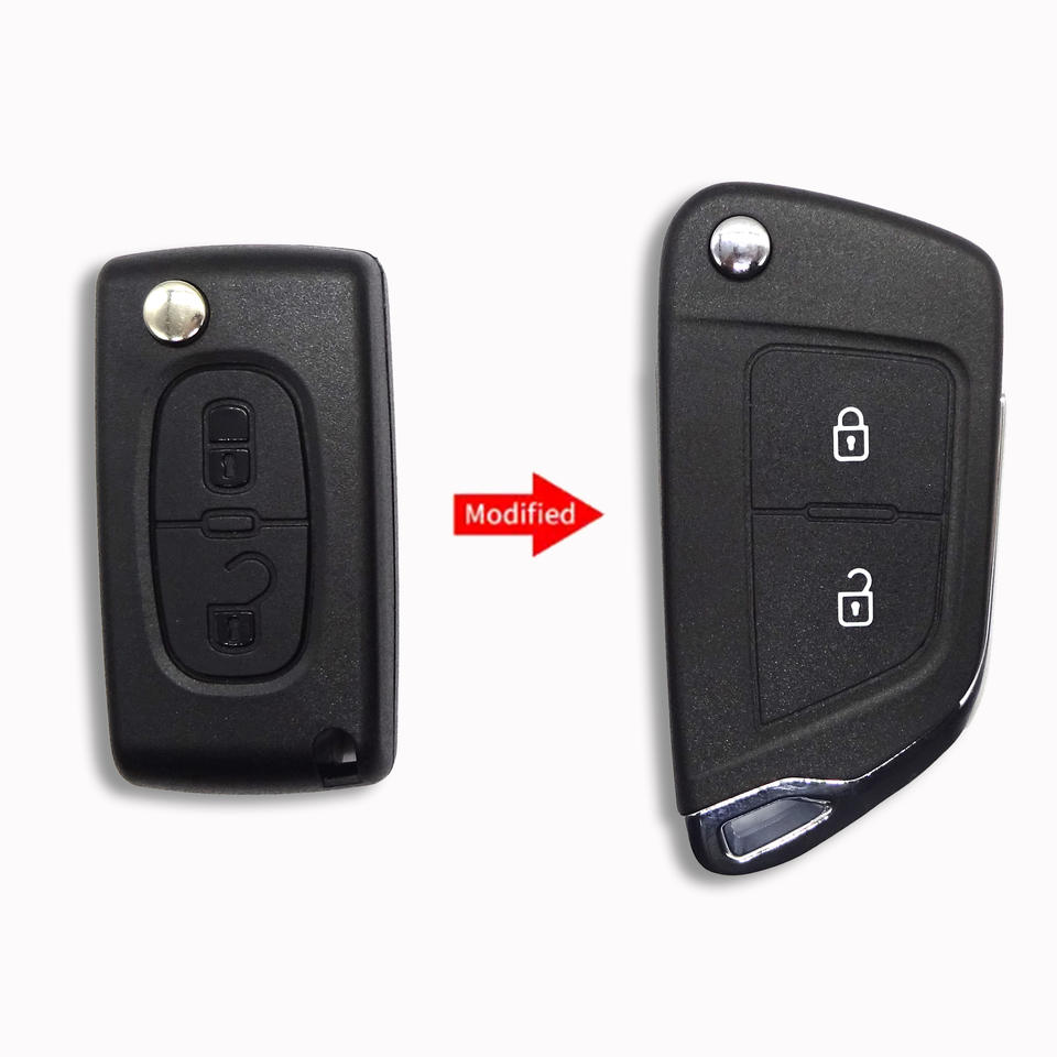Coque de clé modifiée à 2 boutons pour Peugeot Citroën CE0536 avec lame HU83 Coque de clé de voiture à distance
