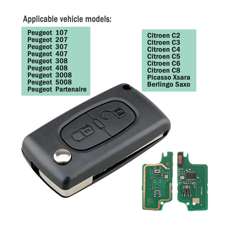 Clé Pliante Télécommande 2 Boutons 433 MHz Puce PCF7961 Lame HU83 pour Peugeot 207 307 308 408 CE0536