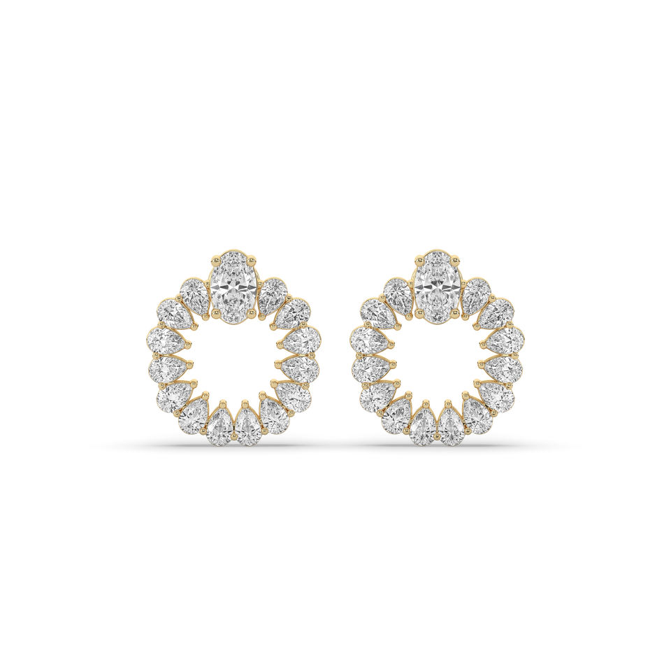 Boucles d'oreilles en diamant de laboratoire ovale de 2 carats, or jaune 14 carats, légères et élégantes, prix de gros, fournisseur direct d'usine de bijoux