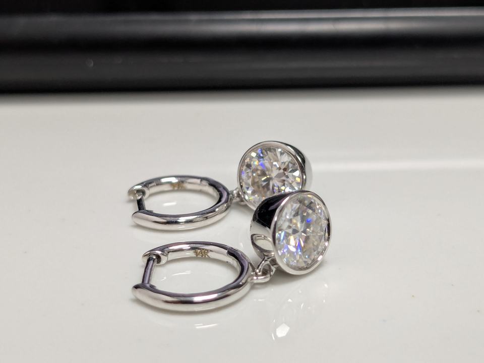Boucles d'oreilles pendantes en or blanc 14 carats massif avec diamant de laboratoire rond de 2 carats serti clos, pour femmes