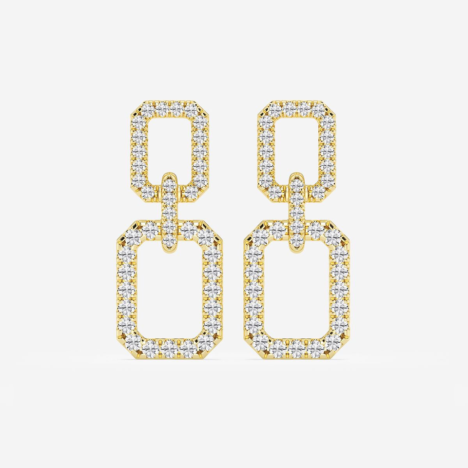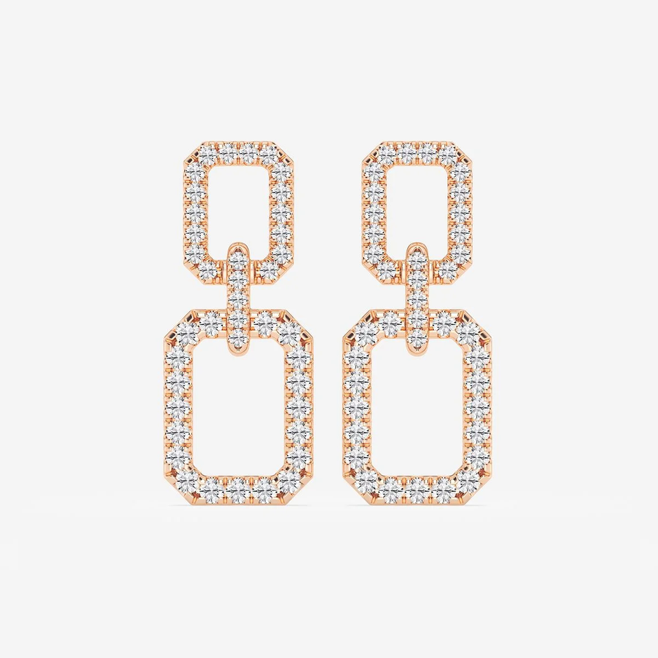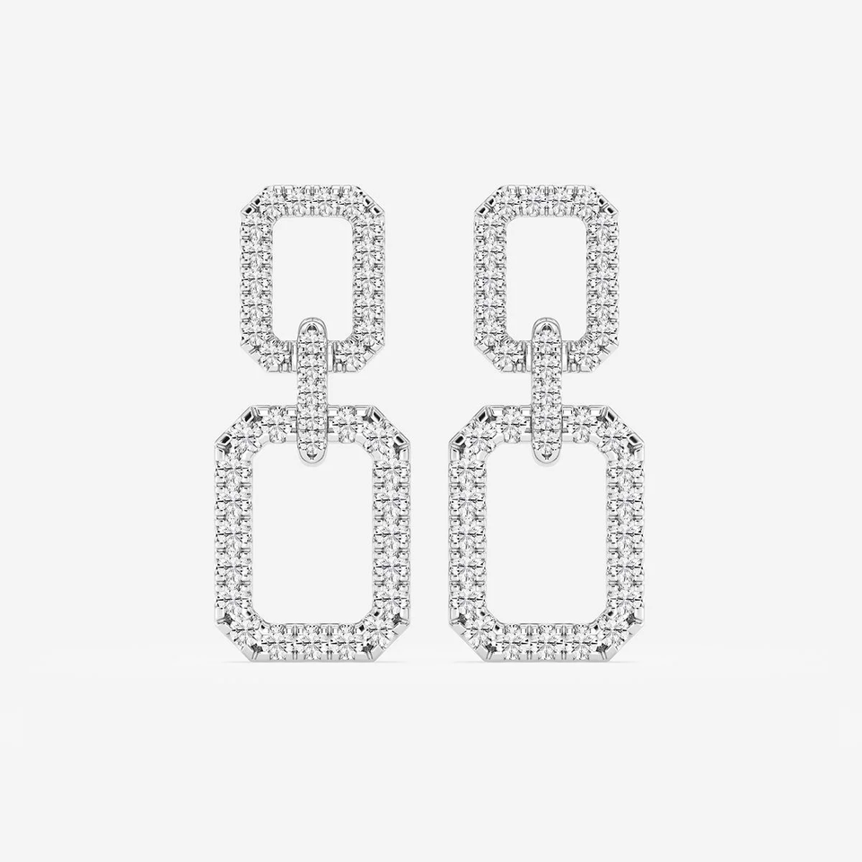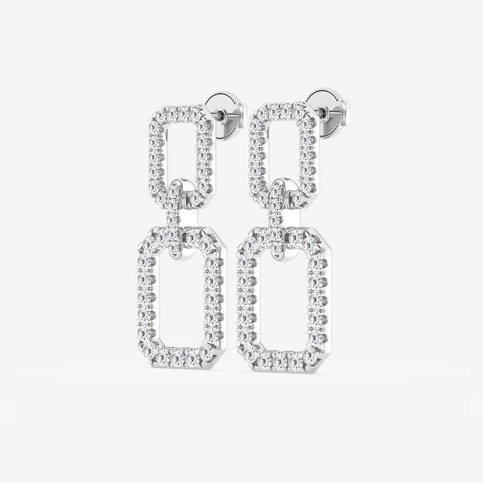 Boucles d'oreilles pendantes rectangulaires doubles avec 2 diamants ronds de laboratoire, bijoux élégants et modernes pour femmes, un accessoire de luxe tendance
