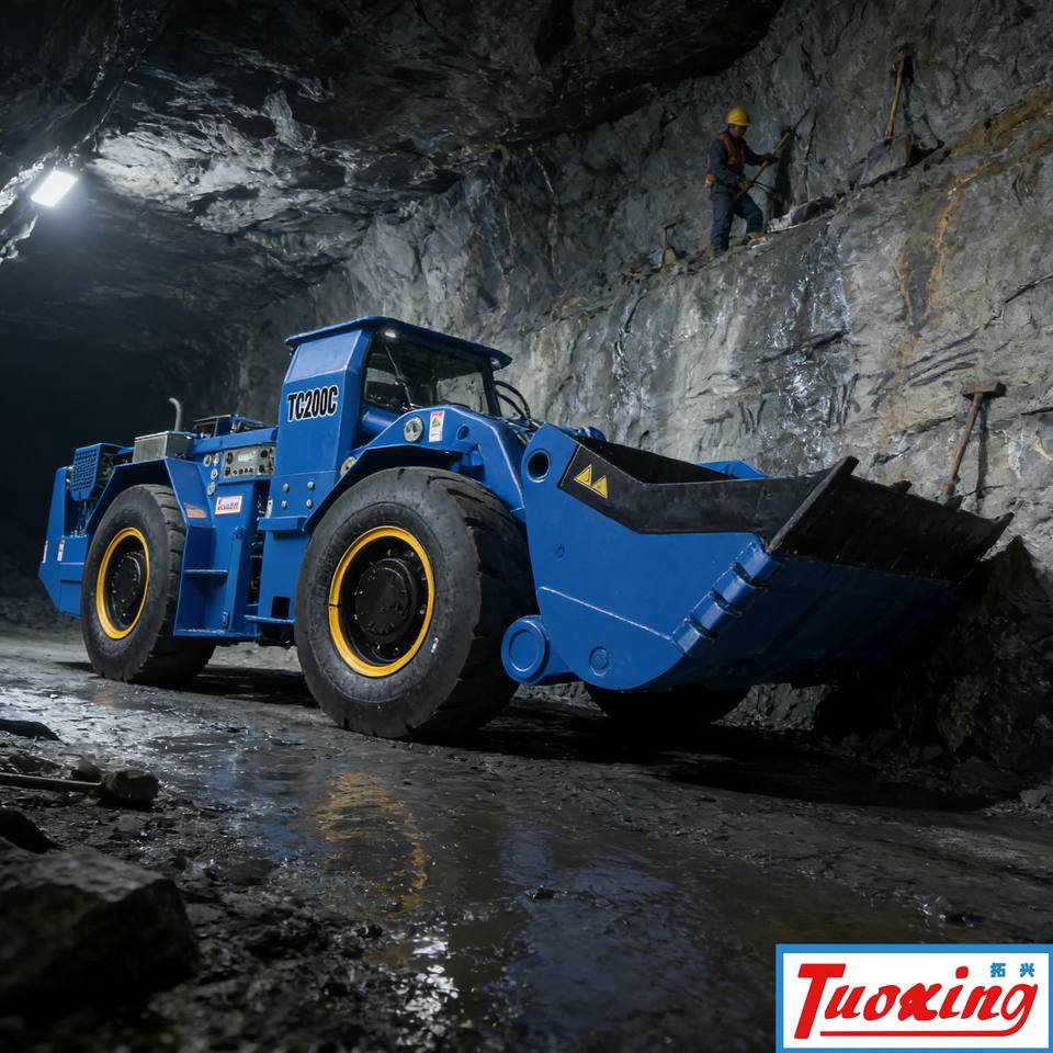Chargeur LHD de 2 mètres cubes Tuoxing TC-200, durable, pour travaux souterrains, longue durée de vie, machine minière, faible entretien