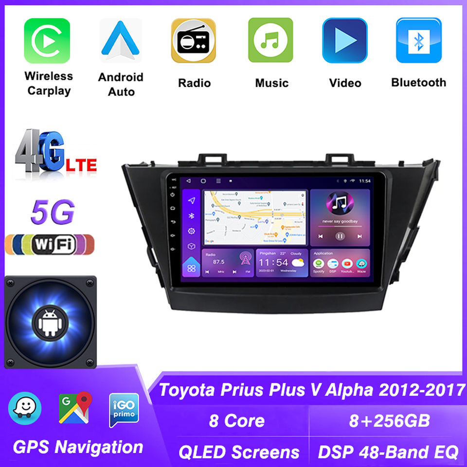 Autoradio Android 2 DIN Carplay pour Toyota Prius Plus V Alpha 2012-2017 FM AM Dvd GPS Player Multimedia Head Unit Stereo