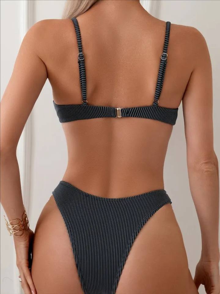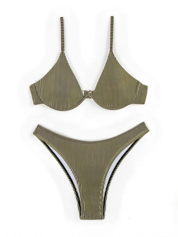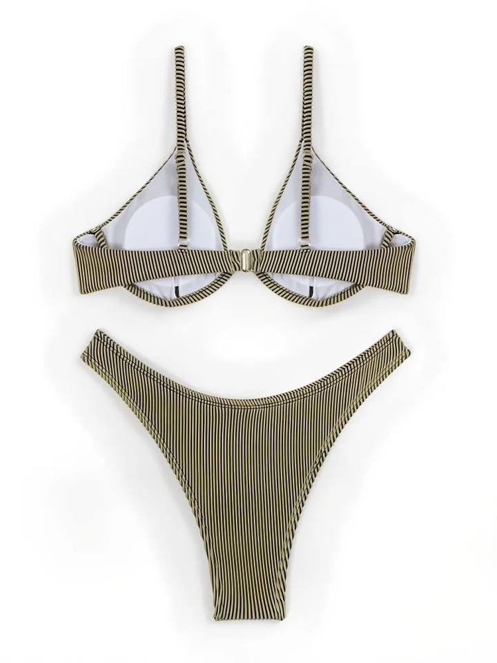Livraison rapide en 2 jours, bikini triangle à armatures pour femmes, bretelles spaghetti, push-up, maillot de bain deux pièces, logo personnalisé