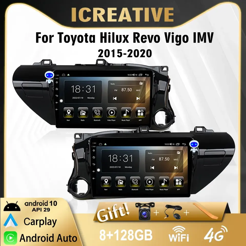 Système de navigation GPS avec écran tactile Android Auto et Carplay 4G 2 Din pour Hilux 2015-2016 avec assistance au recul multimédia et Mirror Link