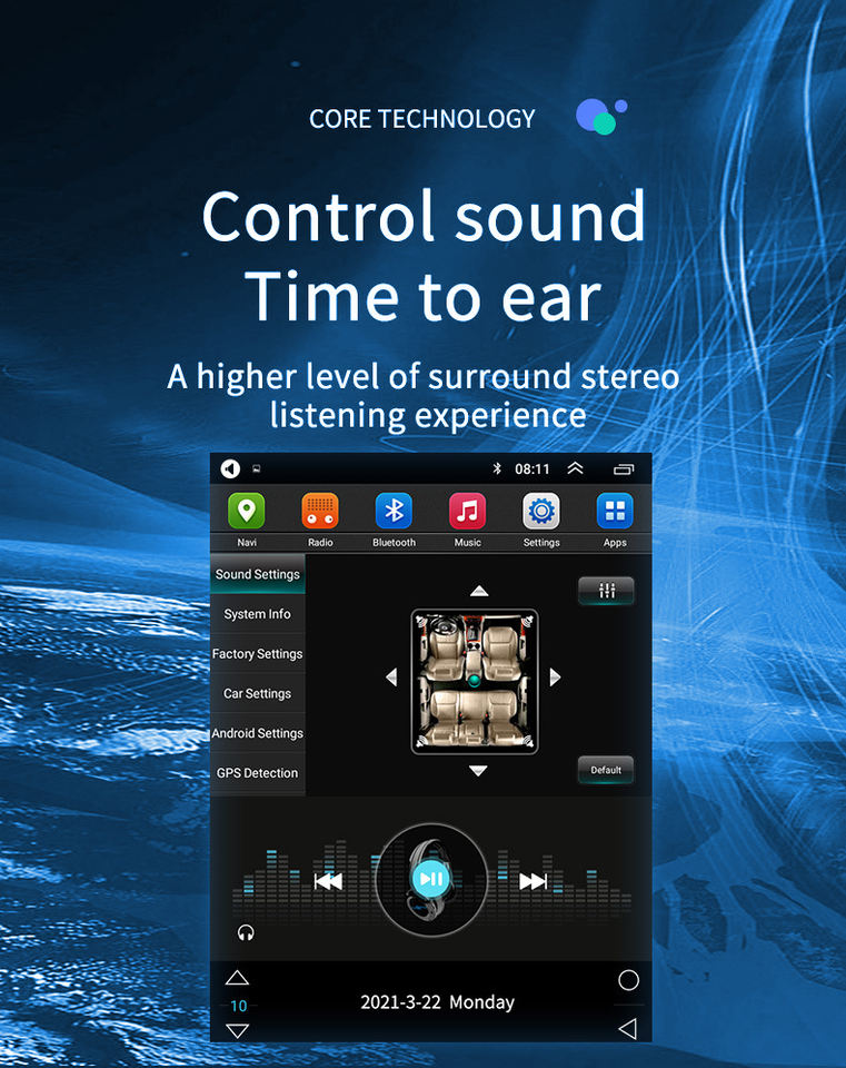 Mains-libre, Amplificateur, DSP, Lien de miroir, Android auto, Lumières coloréesFonction