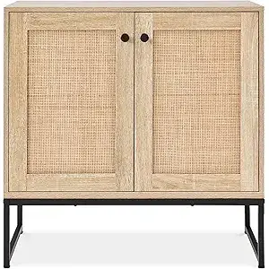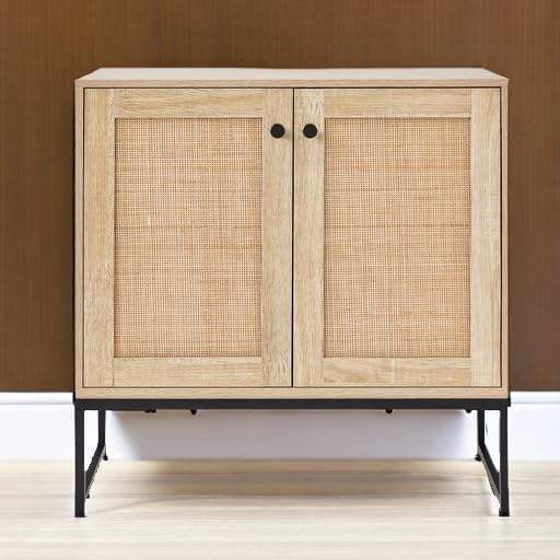 Armoire de rangement en rotin antique à 2 portes pour la maison, le salon et la cuisine.