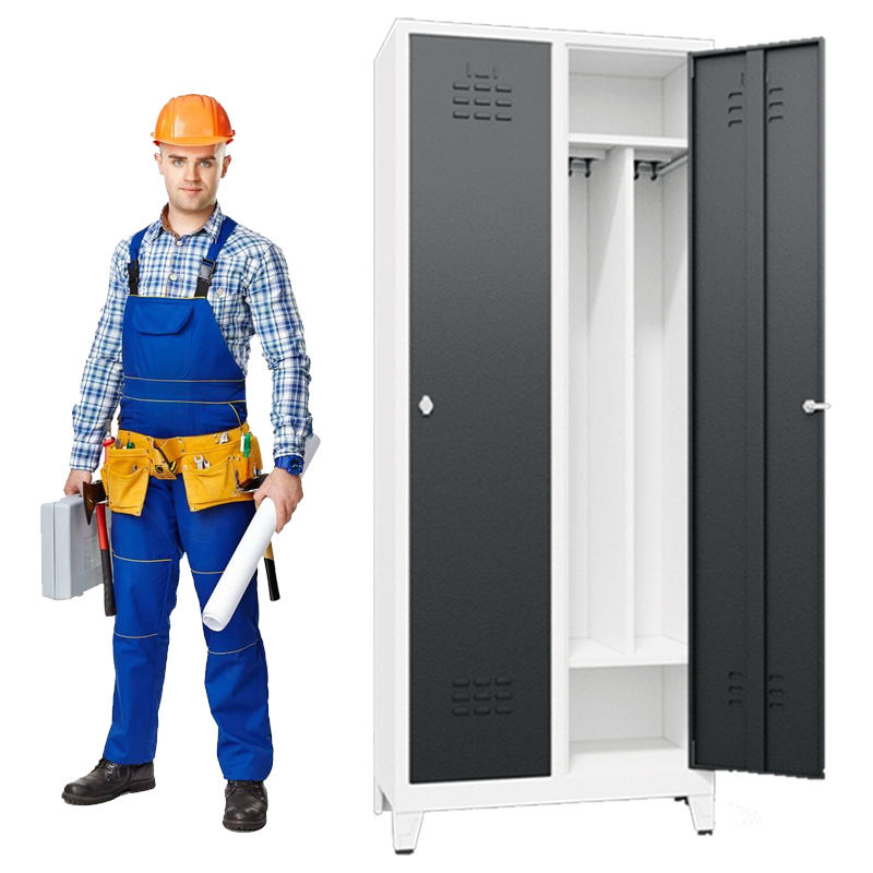 Casier à vêtements de travail à 2 portes avec cloison verticale Armoire sanitaire pour séparer les vêtements propres et sales