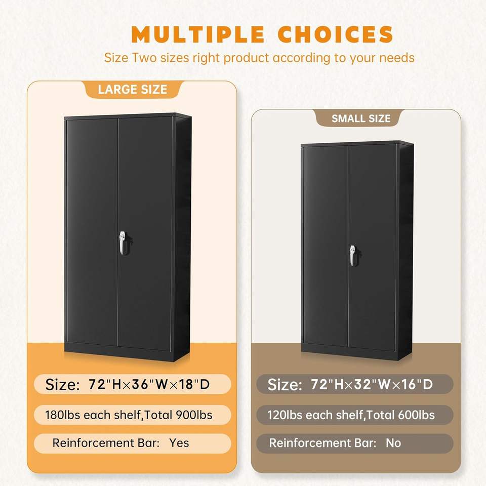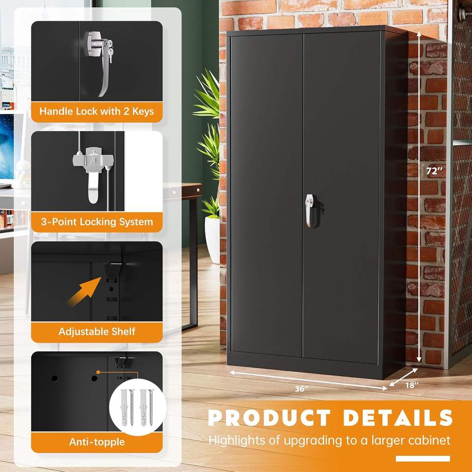 Armoire de rangement SnapIt en acier à 2 portes et 4 étagères réglables Armoire de rangement de garage verrouillable de 72 "en métal avec serrure pour dossiers