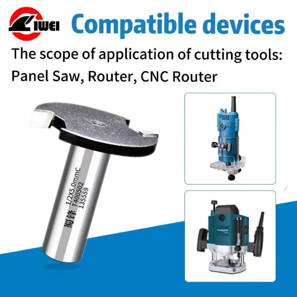 Fraise à 2 cannelures en T avec fraise en carbure de type T pour le travail du bois Outil à tige revêtue d'altin pour le rainurage et le rainurage
