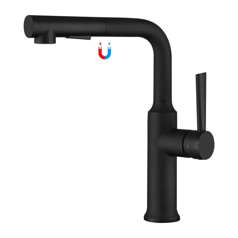 Robinet de cuisine noir extractible avec tête de pulvérisation à 2 fonctions, flexible et à fixation magnétique