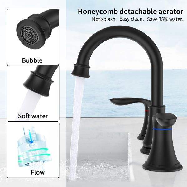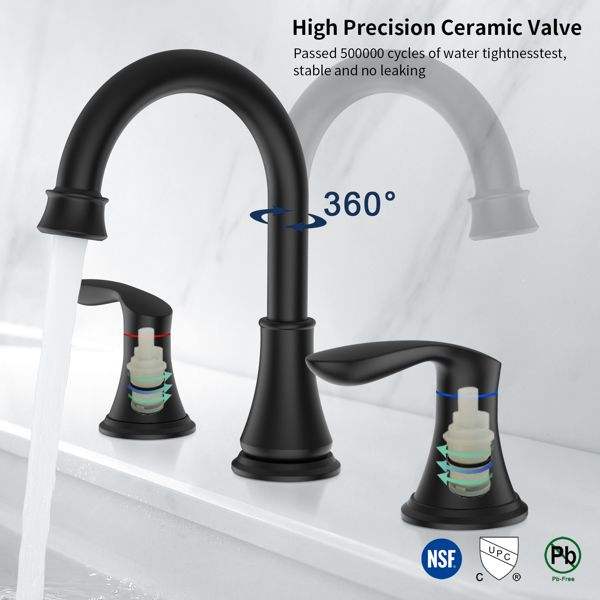 2 Handle 8-Inch Widespread Matt Black Bathroom Sink Faucet 360 Degrees Swivel Spout 3-Hole Lavatory Faucet for Vanity Shower