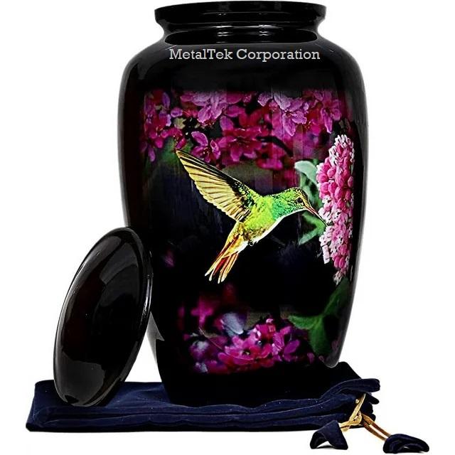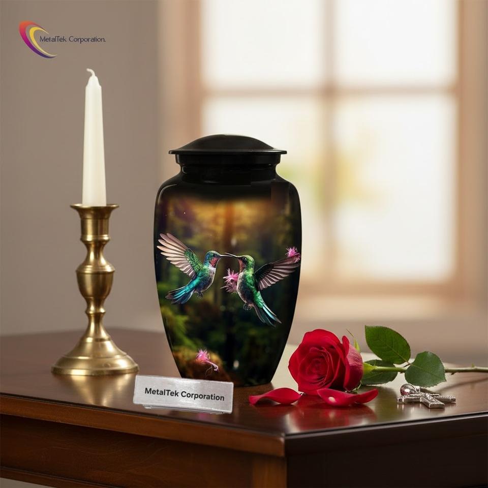 2 Urnes funéraires décoratives en métal, design personnalisé coloré Colibris, pour cendres commémoratives et cérémonies funéraires