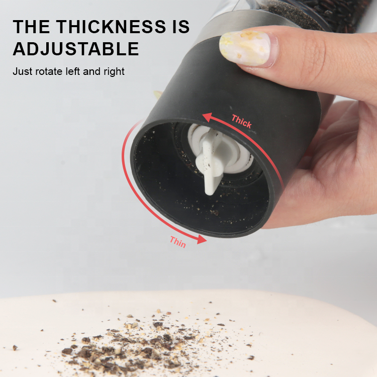 Moulin à sel et à poivre manuel rechargeable à double chambre, conception 2 en 1, mécanisme de broyage réglable, plastique épais, moulin à poivre noir