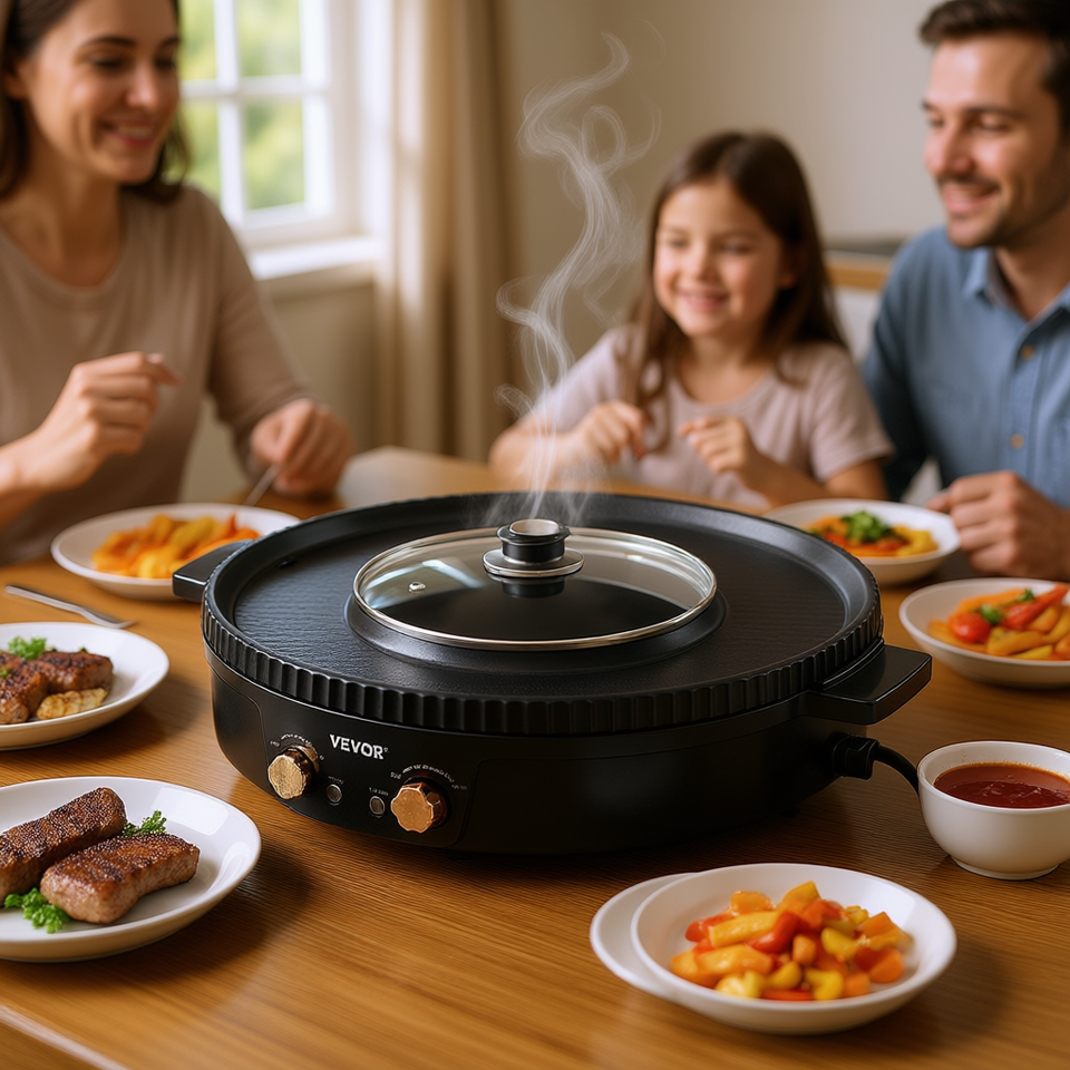 Casserole électrique et grill 2 en 1, 1800W, sans fumée, pour hot pot et barbecue