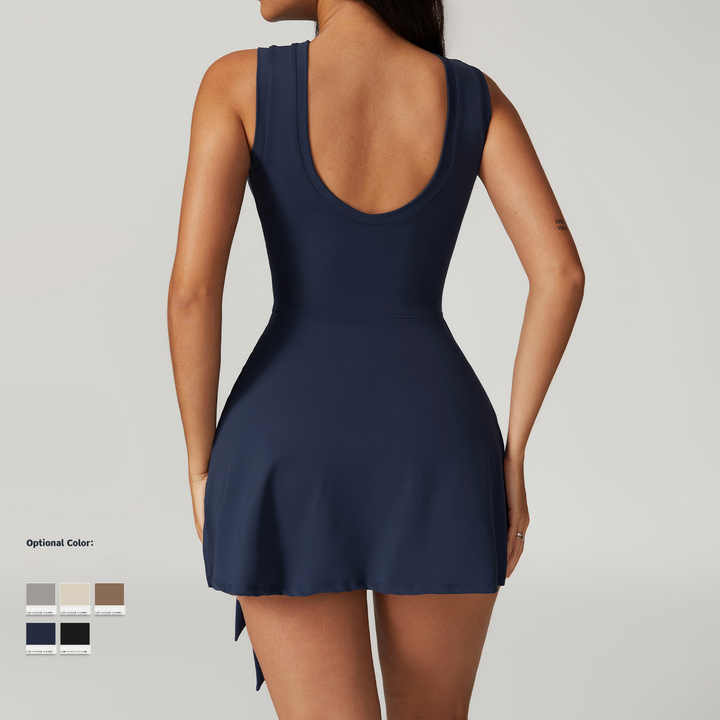 Jupe de tennis 2 en 1 à dos en U pour femmes, tenue de gros pour femmes, femme noire, nylon, prix bon marché