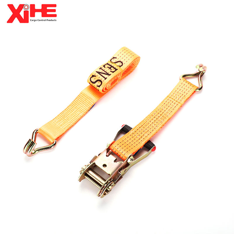 Sangle d'arrimage à cliquet 2 pouces 5 tonnes avec double crochet en J 5m/6m/8m/10m/15m Ceinture d'arrimage de cargaison