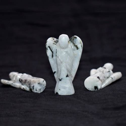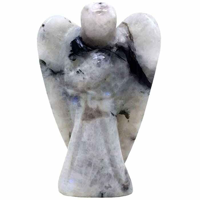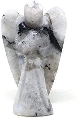 Ange en cristal naturel de 2 pouces environ Pierre de lune arc-en-ciel Pierre précieuse de guérison Statue d'ange en agate de style Feng Shui