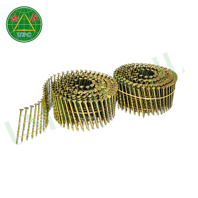 Clous de palette en bobine de 2 pouces, revêtement jaune à tige lisse/à vis, tête à carreaux 9000 pièces pour la fabrication de palettes au meilleur prix!