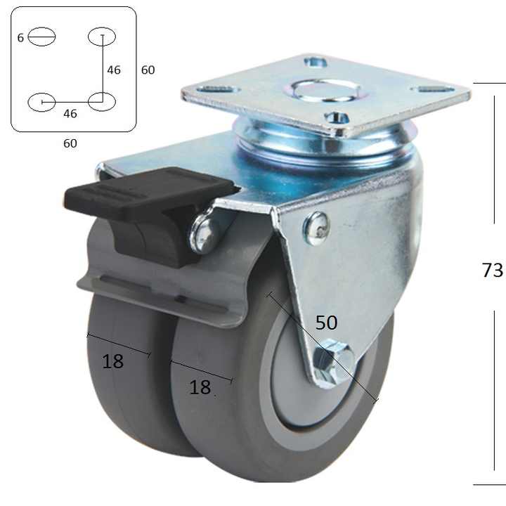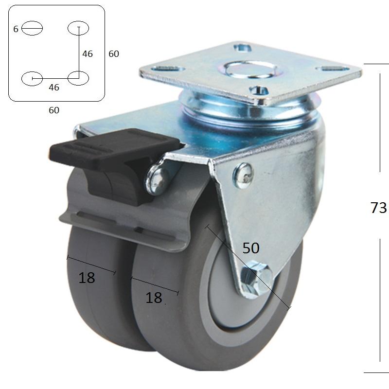 Roulette industrielle pivotante de 2 pouces à double roue de 50 mm avec frein pour équipement d'instruments