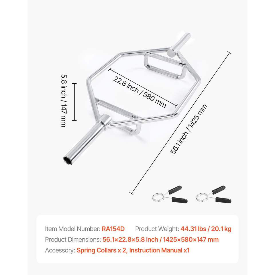 Barre hexagonale de 2 pouces avec poignées moletées, capacité de 800 lb, pour exercices de shrug, équipement d'entraînement de force et de musculation