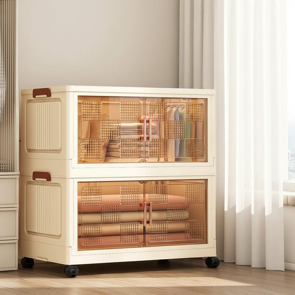 Armoire à tiroirs pliable en plastique portable à 2 niveaux avec roulettes, organisateurs de rangement empilables multifonctionnels