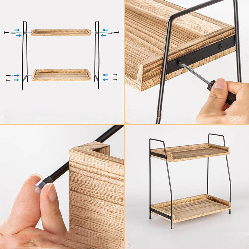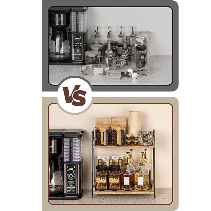 Boîte de rangement en bois à 2 niveaux pour la maison, le bureau ou la cuisine, pour ranger les épices et les accessoires pour dosettes de café