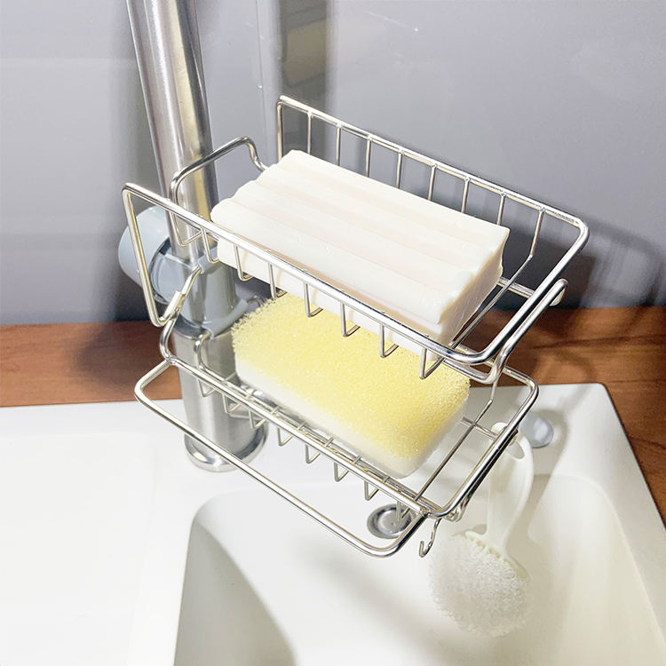 Support de vidange de robinet de cuisine détachable à 2 couches, porte-éponge de savon d'évier de salle de bain