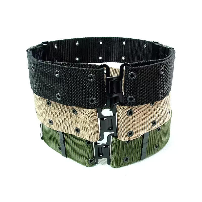 Olive Green Nylon PP Tactical Uniform Belt 2-Lines 32 Brass Eyelets Heavy Gauge Powder Coated Black Personal Defense Equipment