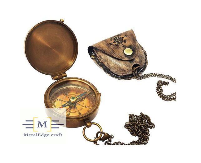 Boussole de poche magnétique en laiton nautique, 2 ", avec étui à tour Premium et Guide de marquage marron brillant