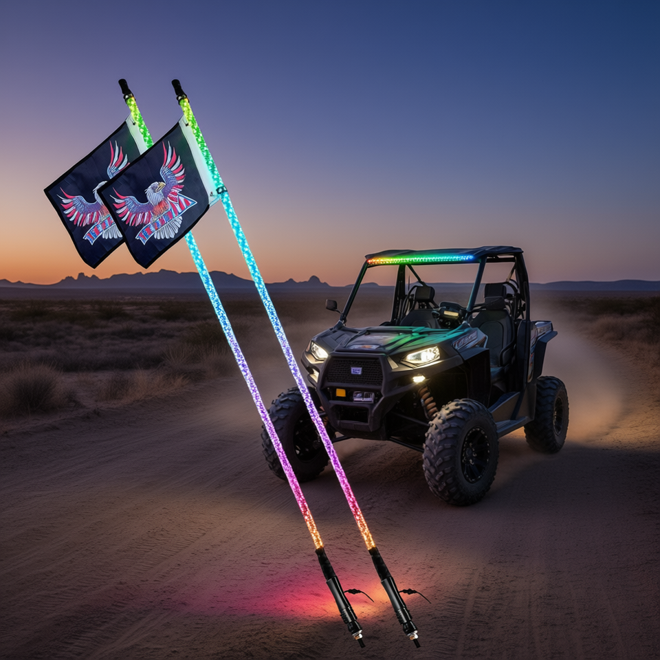 2 pièces de feux LED spirale RGB étanches de 3 pieds avec télécommande RF pour UTV, VTT et karts tout-terrain