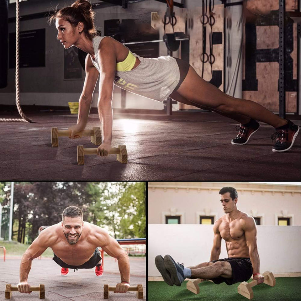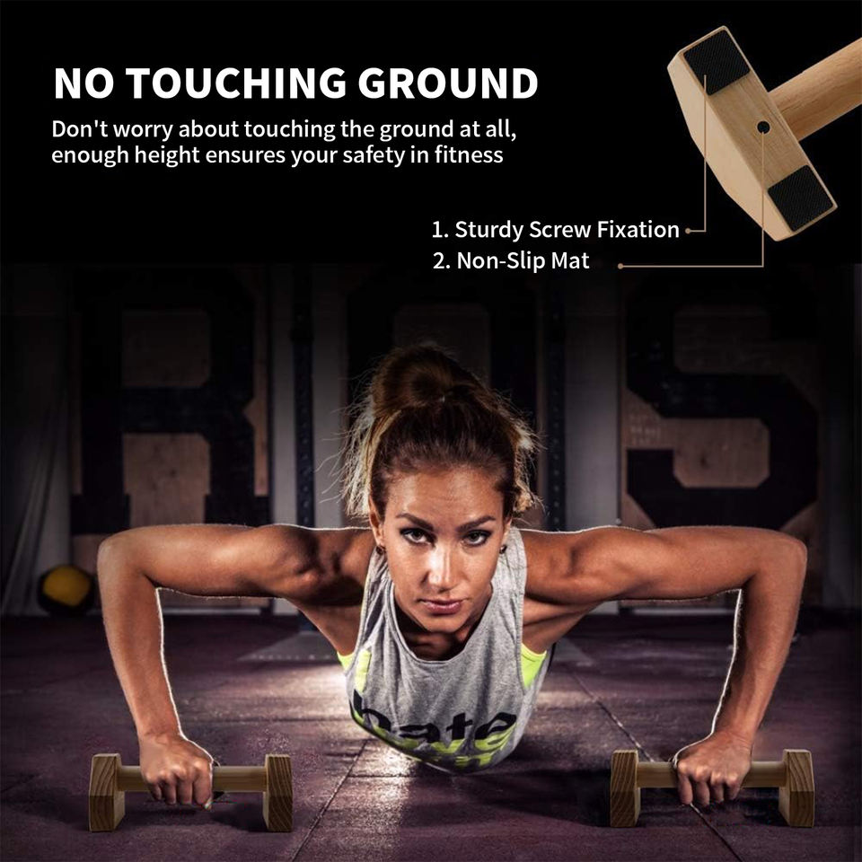 2 PCS Équipement d'entraînement domestique antidérapant Support de poussée en bois pour le fitness et la gymnastique Barres de poussée haut de gamme
