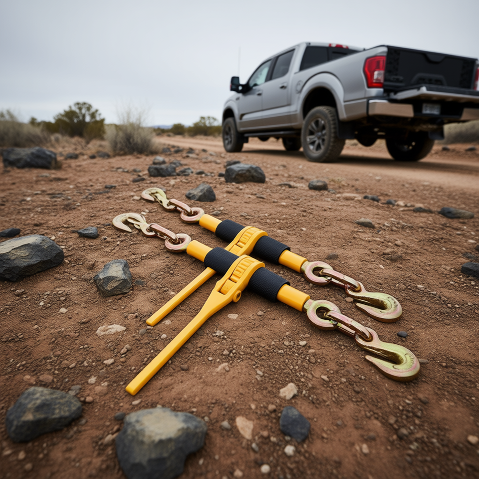 Tendeur à cliquet pour chaîne en acier de 1/4-5/16 po, 2600 lb, crochet en J pour un arrimage sécurisé